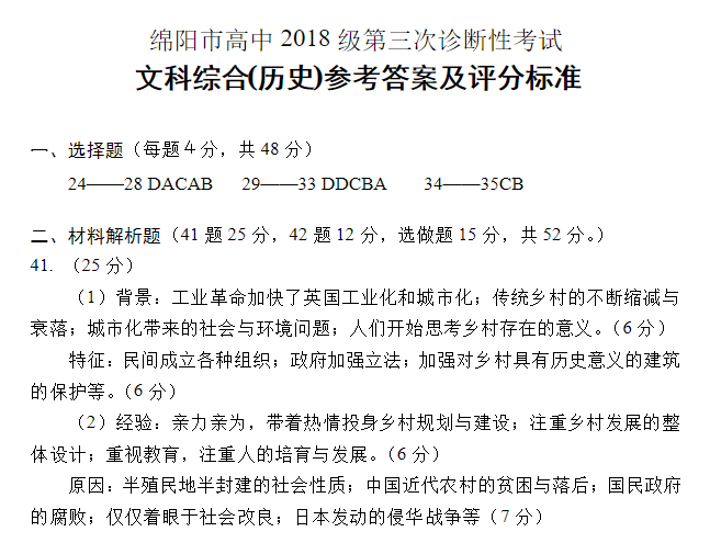 阳光学习网 来源: 绵阳三诊文综 2021-04-22 本文受益:人 大 中 小