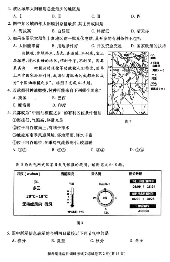 2017届湖北部分重点中学高三新考试大纲调研文综试题及答案(2)