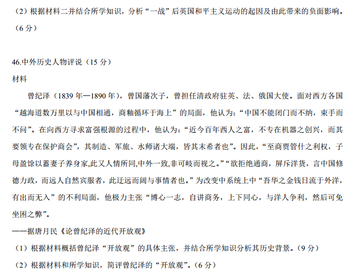 河北徐水2016—2017学年高三第一学期月考二文综试题及答案(15)