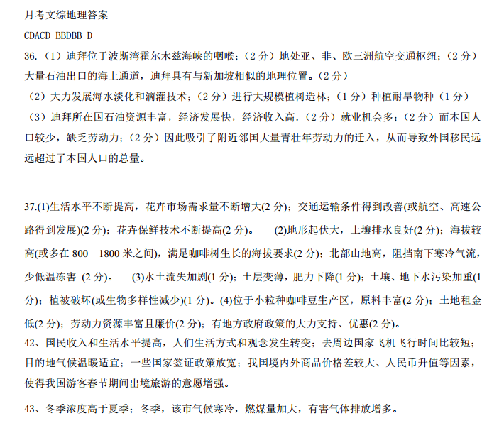 河北徐水2016—2017学年高三第一学期月考二文综试题及答案(16)