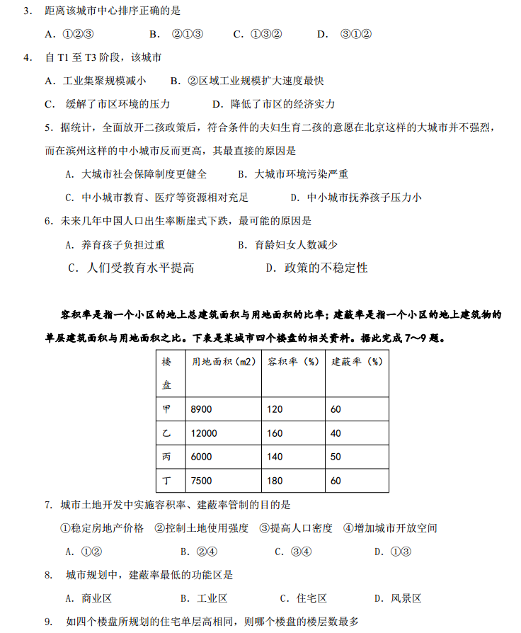 河北徐水2016—2017学年高三第一学期月考二文综试题及答案(2)