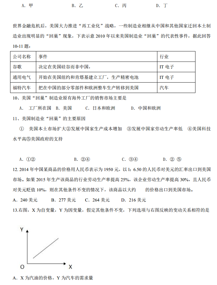 河北徐水2016—2017学年高三第一学期月考二文综试题及答案(3)