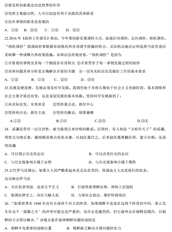 河北徐水2016—2017学年高三第一学期月考二文综试题及答案(6)