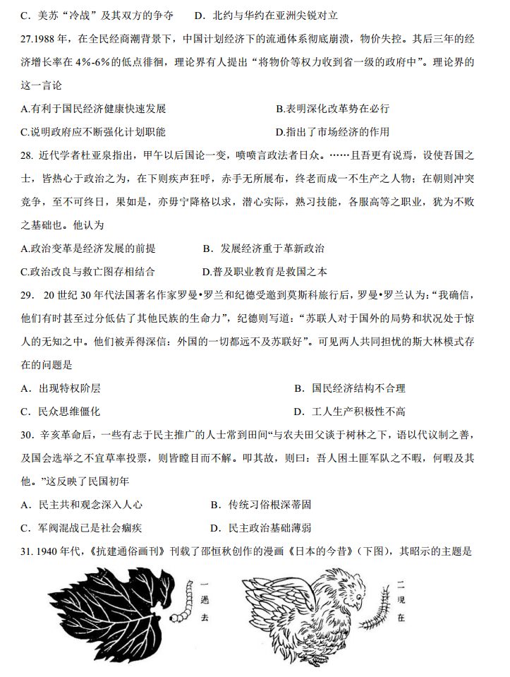 河北徐水2016—2017学年高三第一学期月考二文综试题及答案(7)