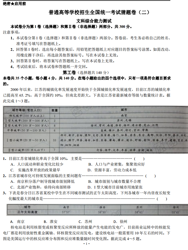 2016河北普通高等学校招生全国统一考试猜题卷二文综试题及答案