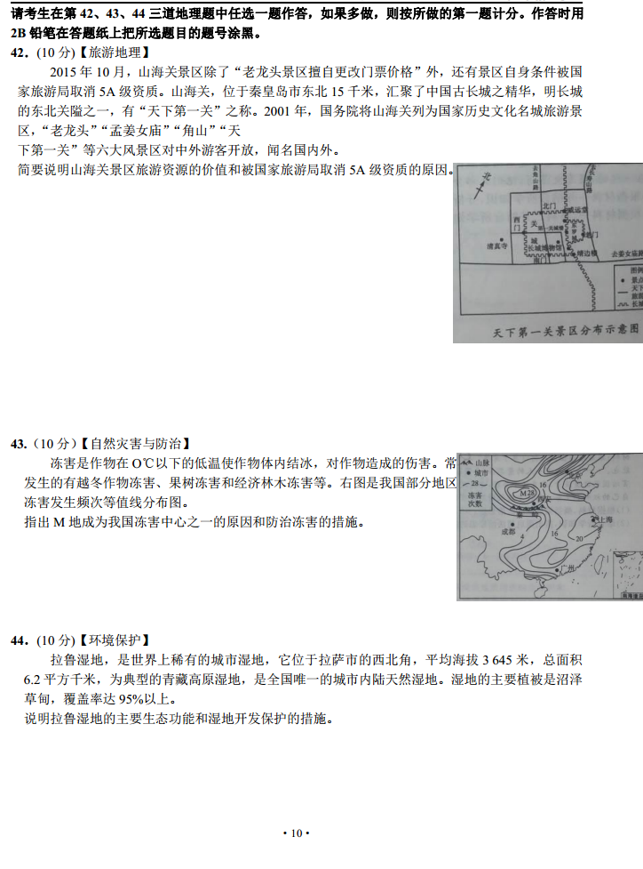 2016河北普通高等学校招生全国统一考试猜题卷二文综试题及答案(10)