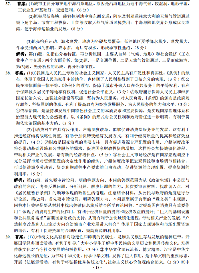 2016河北普通高等学校招生全国统一考试猜题卷二文综试题及答案(18)