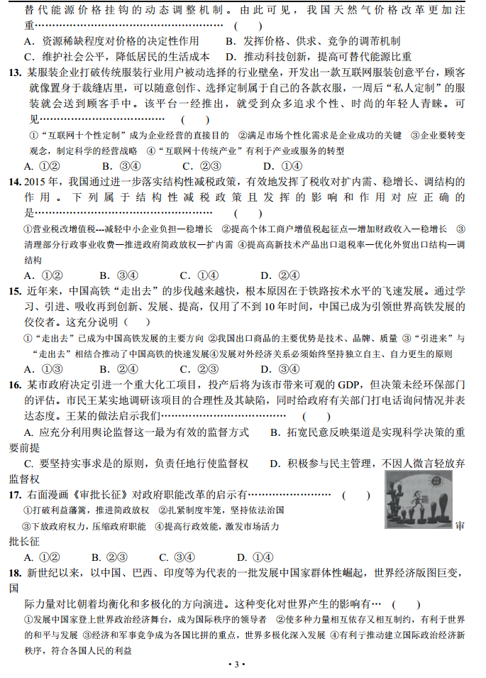 2016河北普通高等学校招生全国统一考试猜题卷二文综试题及答案(3)