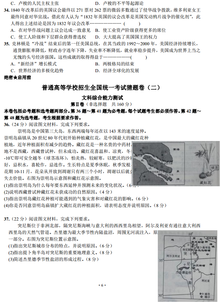 2016河北普通高等学校招生全国统一考试猜题卷二文综试题及答案(6)