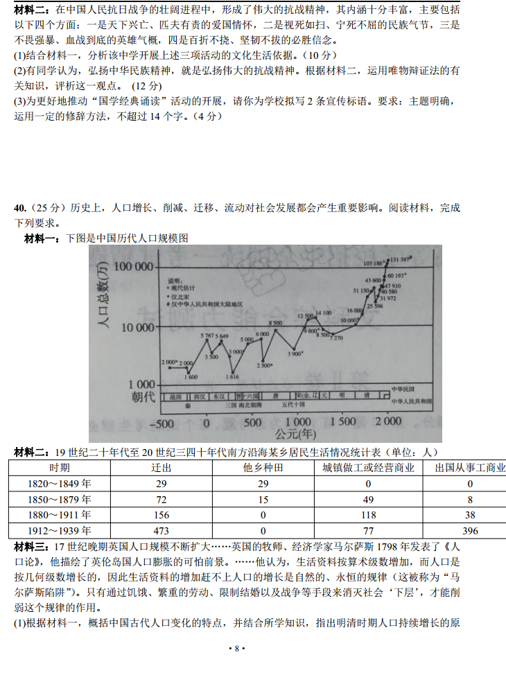 2016河北普通高等学校招生全国统一考试猜题卷二文综试题及答案(8)