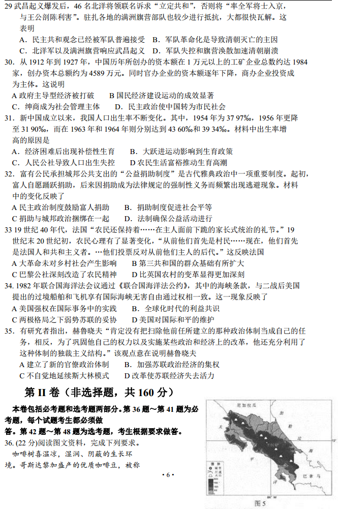 2016云南第二次高中毕业生复习统一检测文综试题及答案(6)