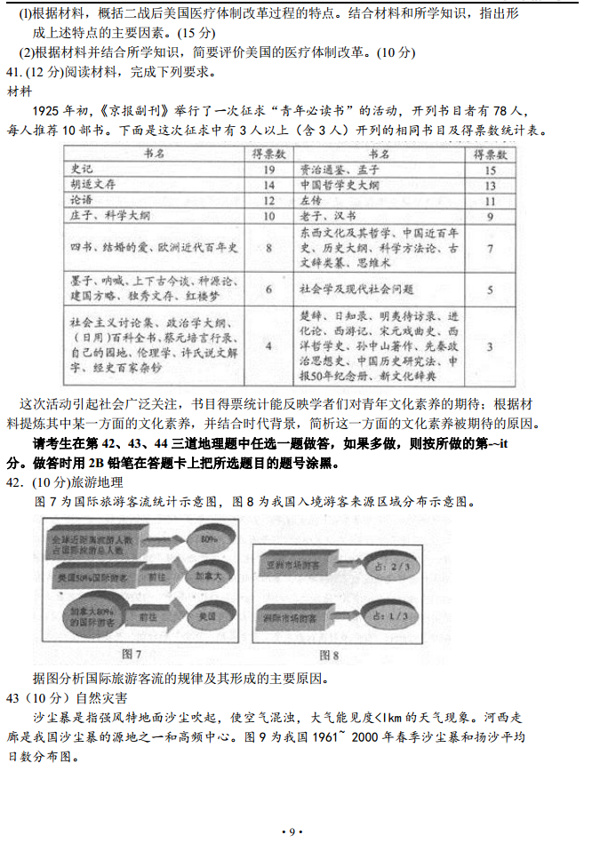 2016云南第二次高中毕业生复习统一检测文综试题及答案(9)