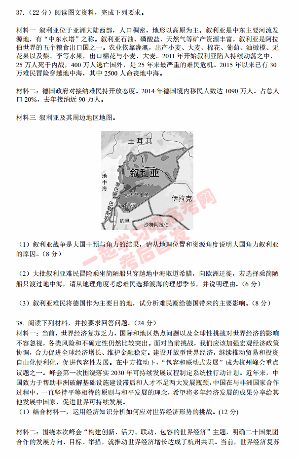 四川成都七中2017届高三二诊文综试题及答案(8)