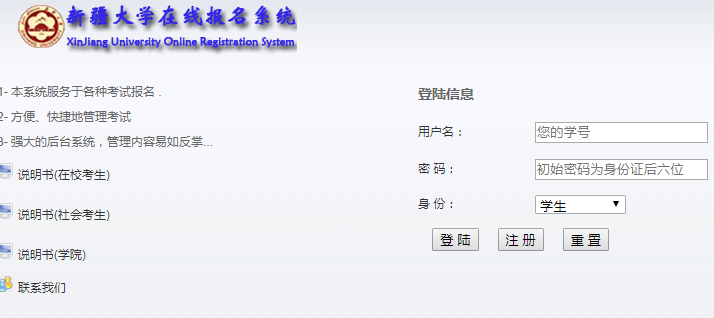 新疆大学在线报名http://120.95.241.12:8080/OnlineRegistration/