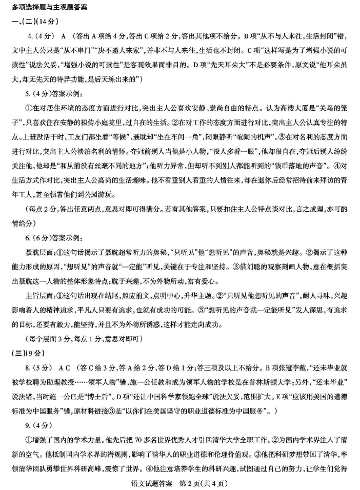 2017年山西省高考考前适应性测试语文试题答案(2)