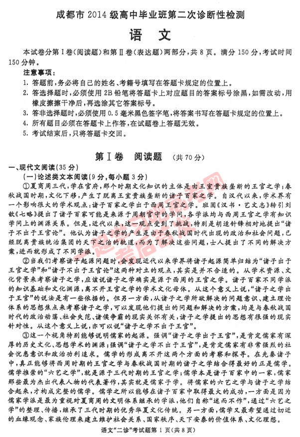 2017年成都二诊语文试题及答案