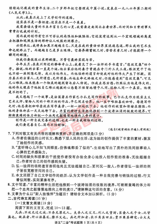 2017年成都二诊语文试题及答案(5)