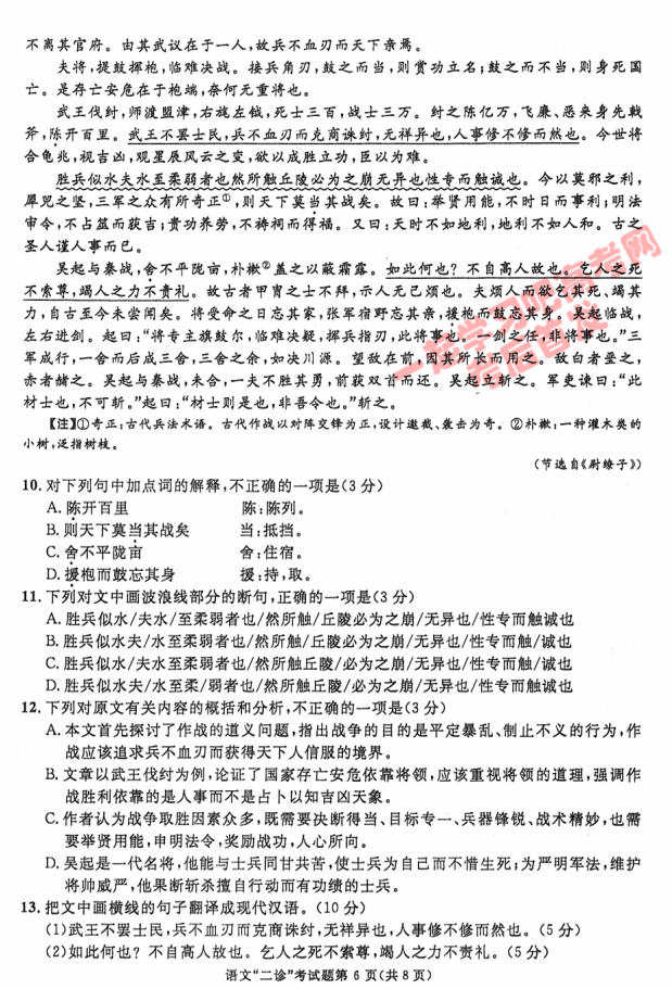 2017成都二诊语文 成都2014级高中毕业班第二次诊断性检测语文试(6)
