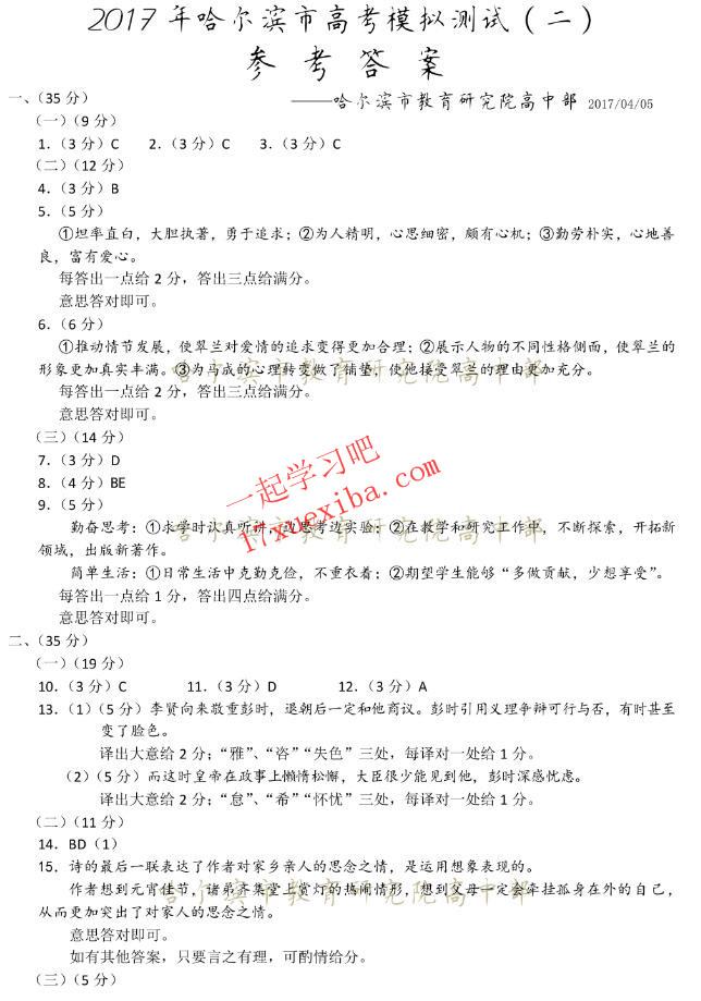 2017年东北三省四市高考第二次模拟考试语文试题及答案(11)