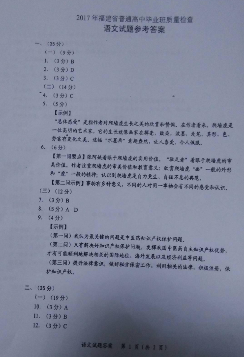 2017年福建省高中毕业班质量检查语文试题及答案(11)