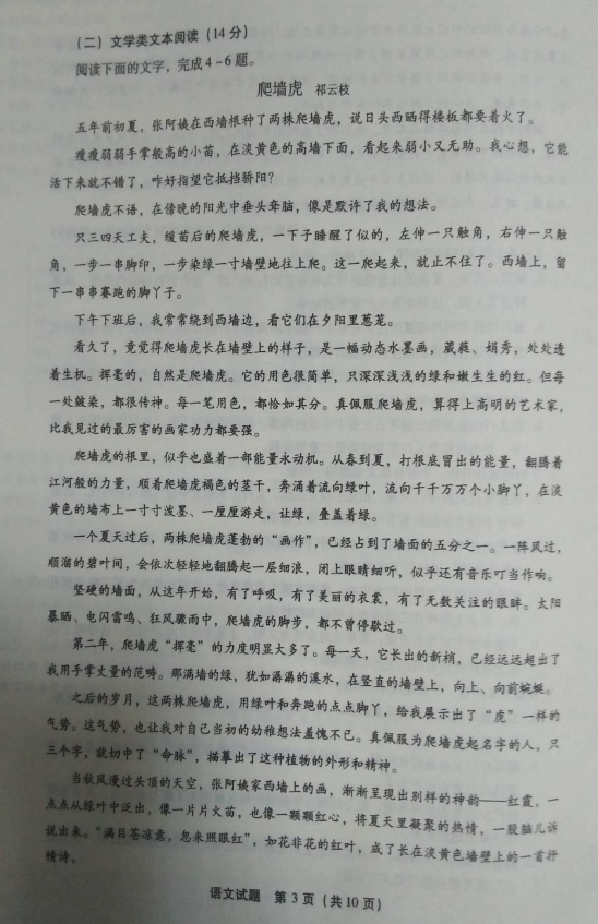 2017年福建省高中毕业班质量检查语文试题及答案(3)