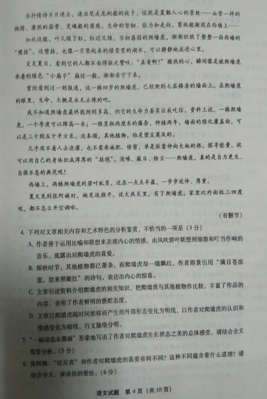 2017年福建省高中毕业班质量检查语文试题及答案(4)