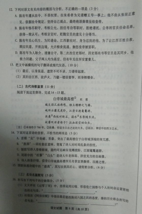 2017年福建省高中毕业班质量检查语文试题及答案(8)
