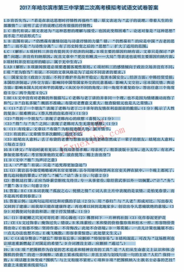 2017年哈三中二模语文试题及答案(11)