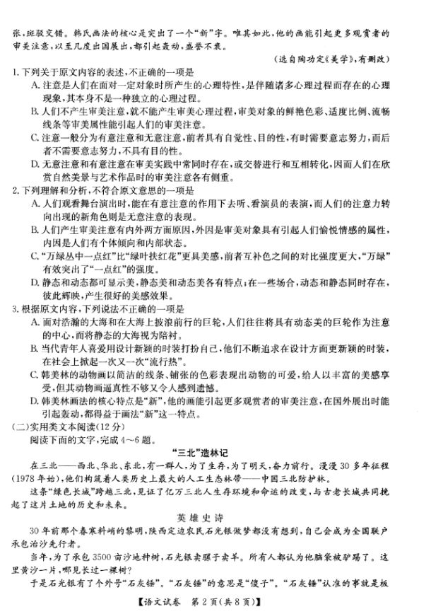 衡水中学2017届高三下学期期中考语文试题及答案(2)