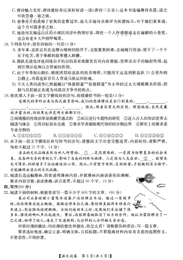 衡水中学2017届高三下学期期中考语文试题及答案(8)