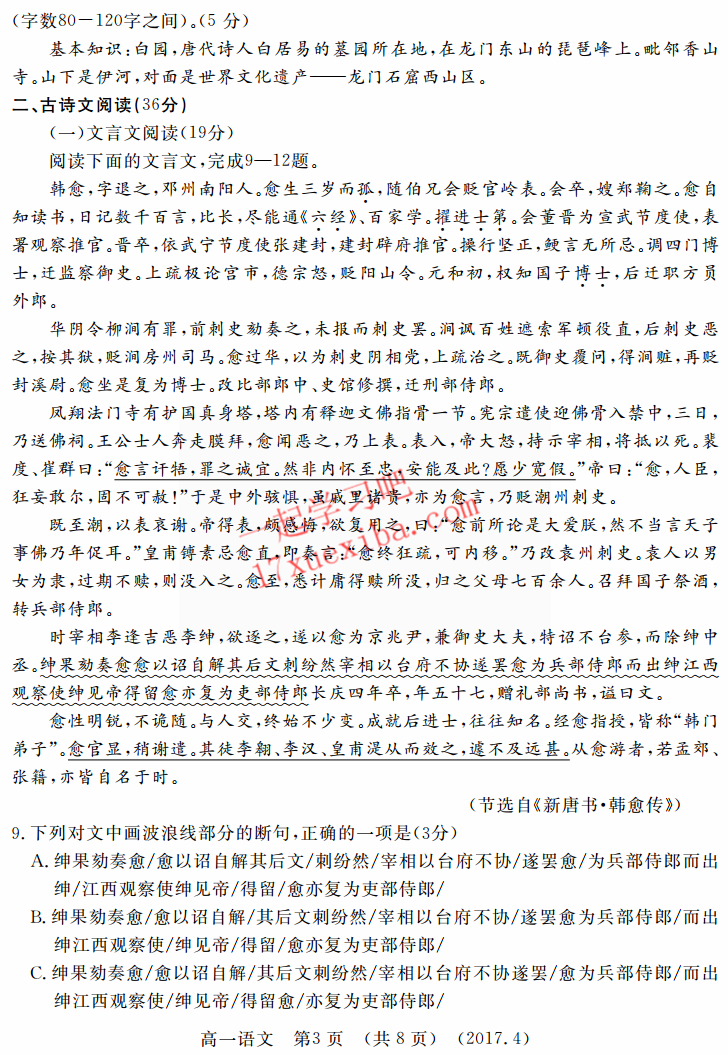 洛阳市2016-2017学年高一期中考语文试题及答案(3)
