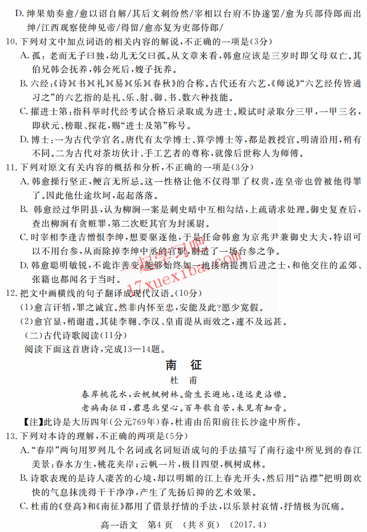 洛阳市2016-2017学年高一期中考语文试题及答案(4)