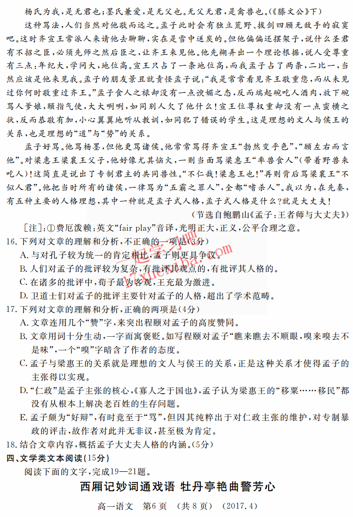 洛阳市2016-2017学年高一期中考语文试题及答案(6)