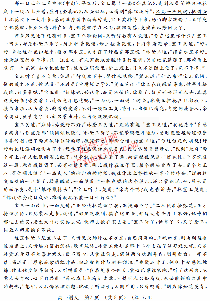洛阳市2016-2017学年高一期中考语文试题及答案(7)