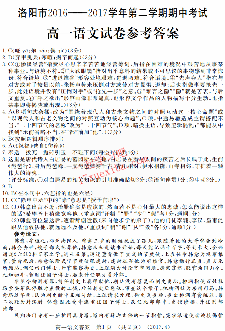 洛阳市2016-2017学年高一期中考语文试题及答案(9)