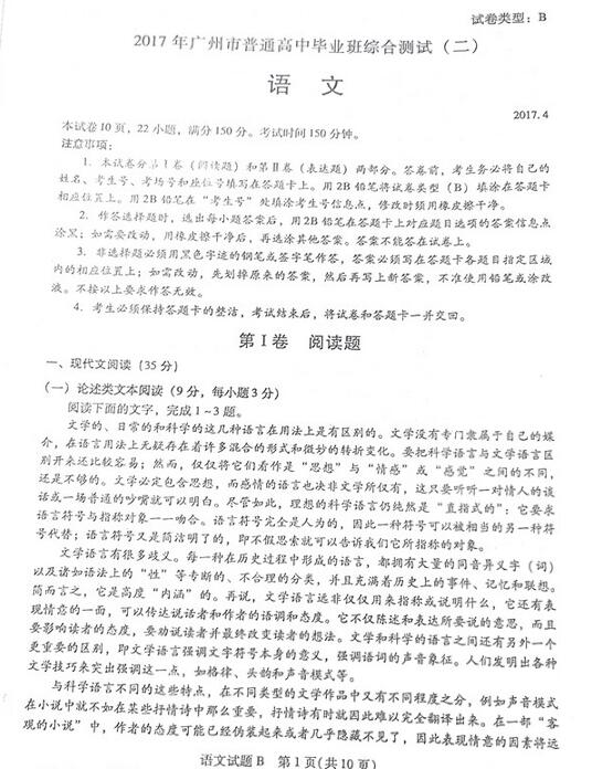 2017广州二模语文答案
