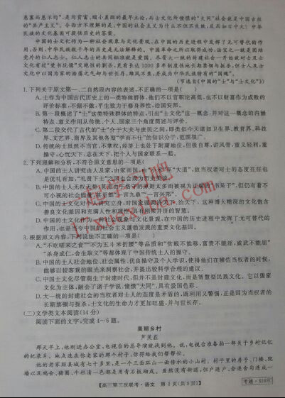 皖南八校2017届高三第三次联考语文试题答案(2)