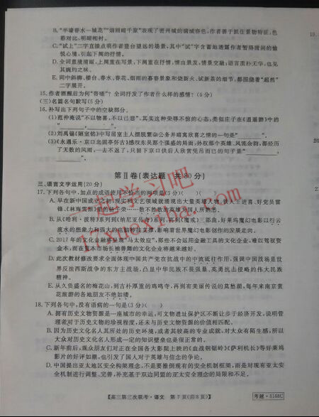 皖南八校2017届高三第三次联考语文试题答案(7)