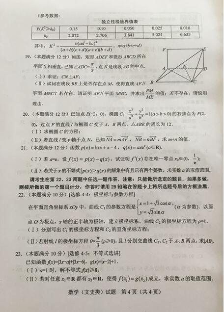 绵阳市高中2014级第三次诊断性考试数学文科试题及答案(4)