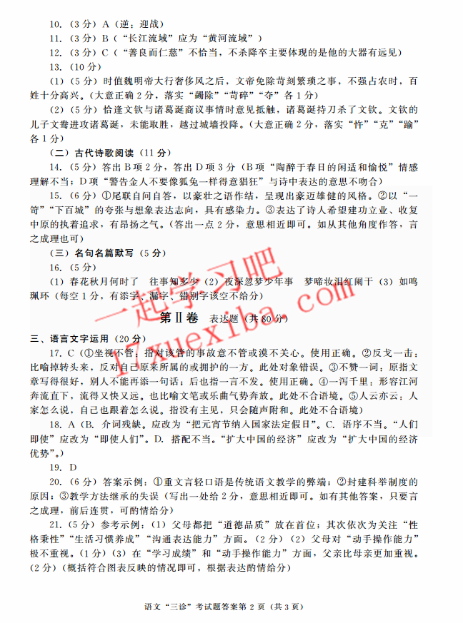 2017年成都三诊语文试题及答案(10)
