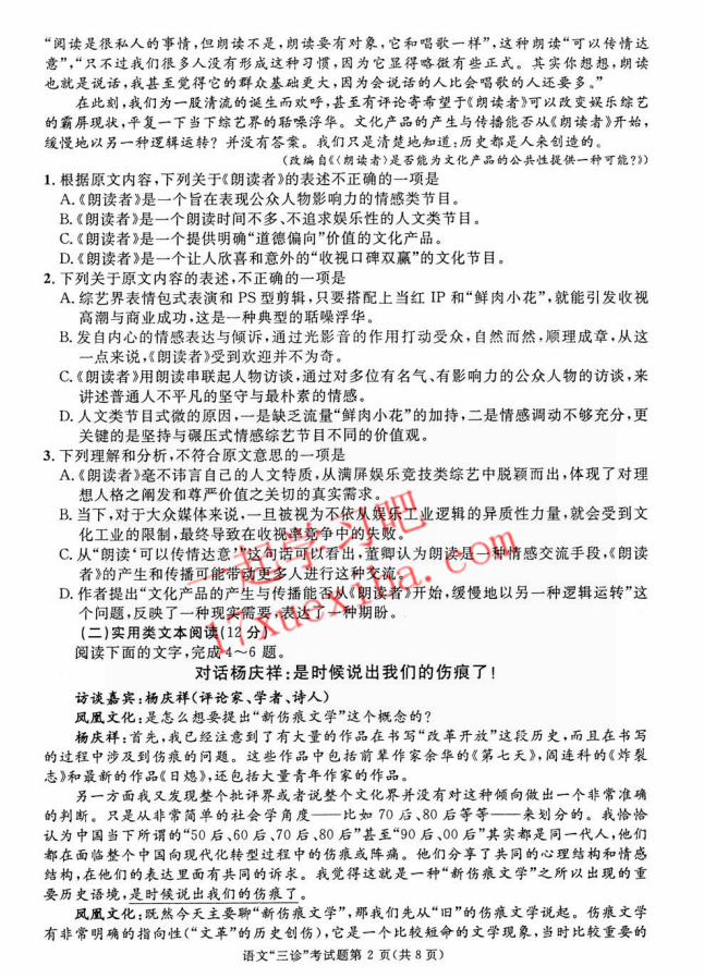 2017年成都三诊语文试题及答案(2)