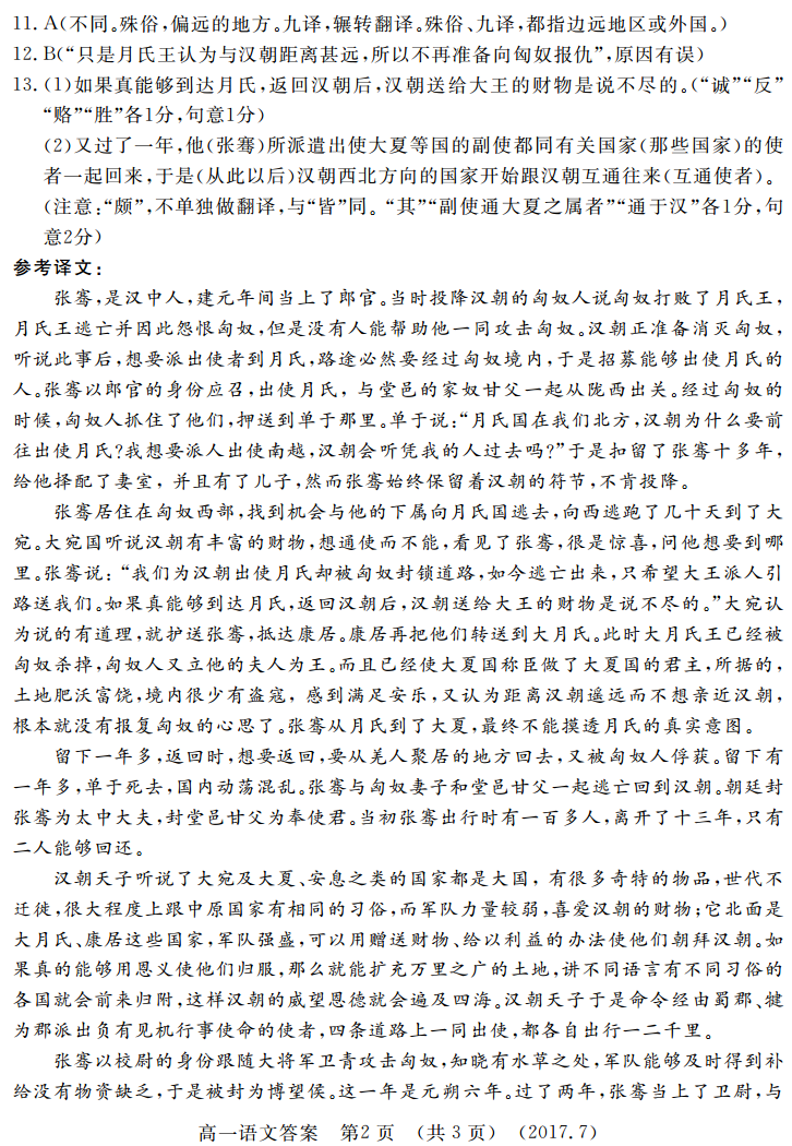 洛阳市2016-2017学年高一年级质量检测语文试题答案(2)