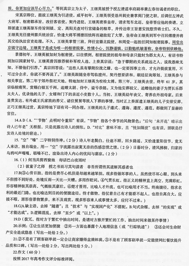 2017-2018学年武汉市部分学校新高三起点调研测语文答案(2)