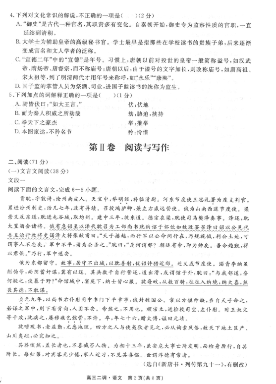 衡水中学2017-2018学年上学期高三二调语文试题及答案(2)