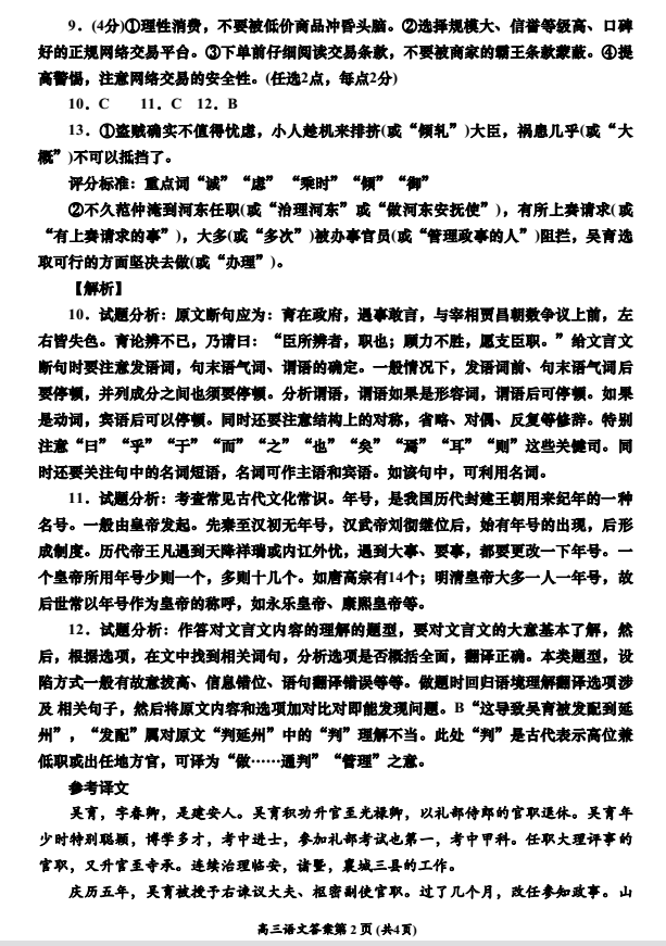 彭州市2017-2018学年上期高三期中教学质量调研语文试题答案(2)