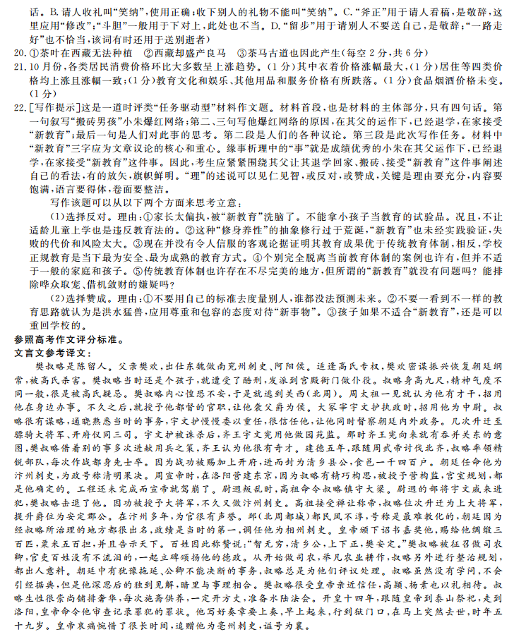 皖南八校2018届高三第二次联考语文试题答案(2)