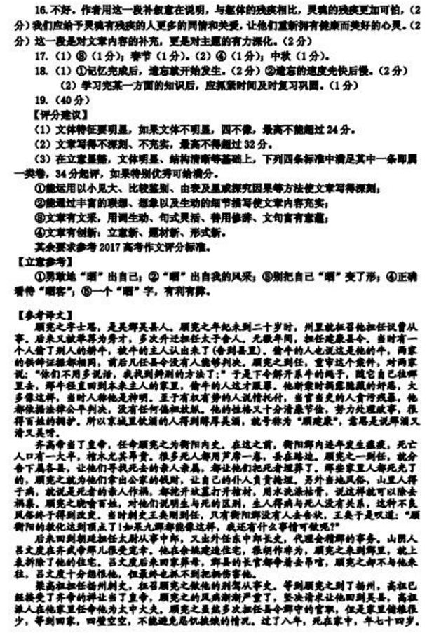 贵阳市2017-2018年第一学期期末考高二语文试题答案(2)