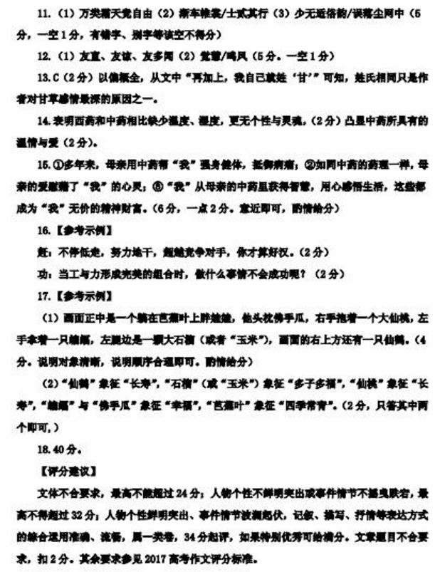 贵阳市2017-2018年第一学期期末考高一语文试题答案(2)