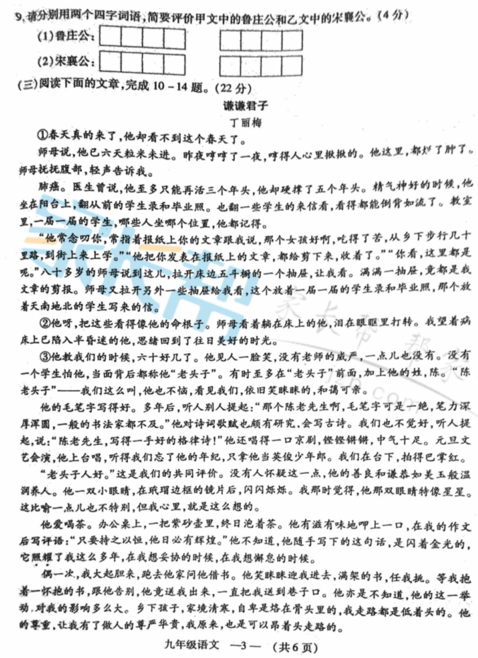福州市2017-2018学年九年级第一学期期末质检语文试题及答案(3)