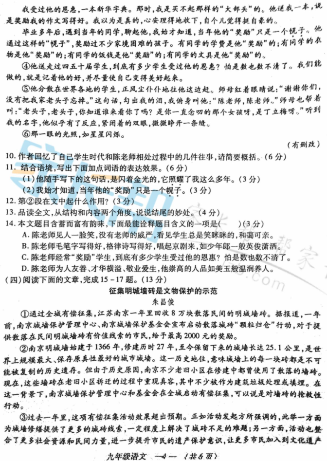 福州市2017-2018学年九年级第一学期期末质检语文试题及答案(4)